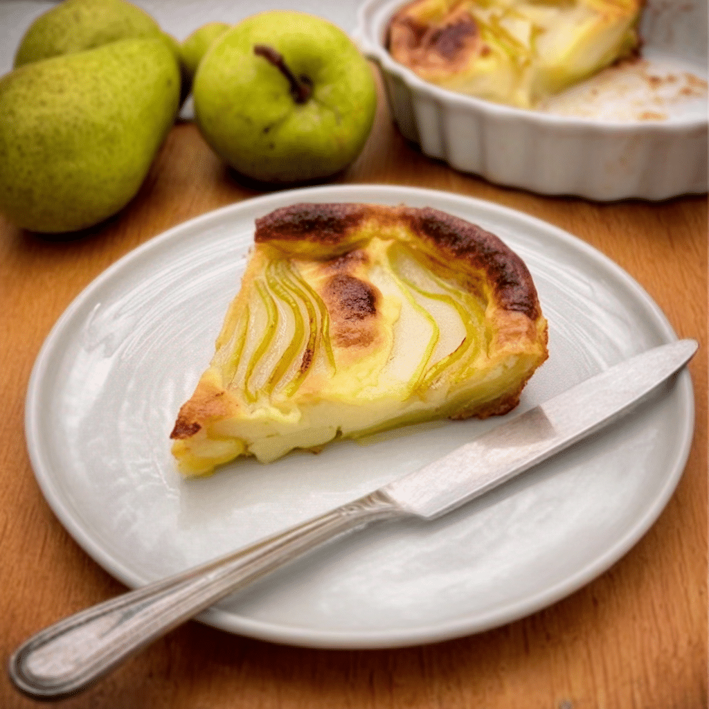 A light, custardy French dessert baked with sweet pears, perfect for impressing guests with minimal effort.