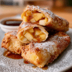 Crispy golden egg rolls filled with gooey cinnamon-apple pie filling the perfect handheld dessert that’s crunchy outside and warm, spiced inside.