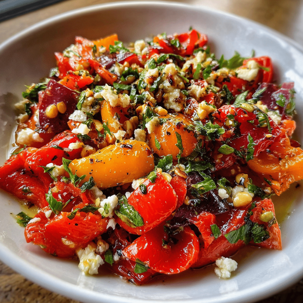 Hi, I’m Sam from dishfoody.com, where comforting classics get a fresh twist. Roasted Red Pepper Salad features charred sweet peppers with olives, fresh mozzarella, and basil oil for Mediterranean vibrancy …