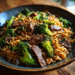 Beef and Broccoli Ramen Stir Fry transforms pantry staple instant ramen into restaurant-quality takeout with tender flank steak slices, crisp broccoli florets, and glossy savory-sweet garlic ginger sauce. Perfect 20-minute weeknight dinner better than delivery.
