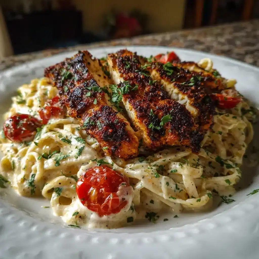 A flavorful combination of spicy blackened chicken and rich Alfredo sauce, perfect for weeknight dinners or special occasions.