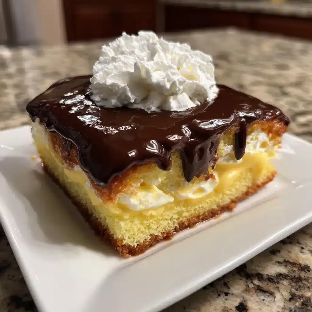 To serve Boston Cream Poke Cake, cut it into squares and plate them nicely. You can garnish with extra whipped cream or chocolate shavings if desired. This cake is delicious on its own but can be enjoyed with coffee or milk.