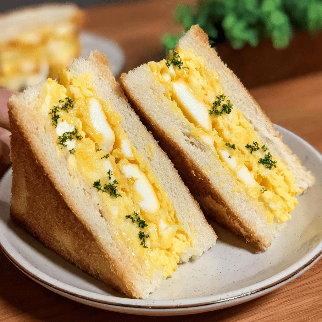 Japanese Egg Sandwich, or Tamago Sando, features ultra-creamy boiled eggs mashed with Kewpie mayo and seasonings between pillowy shokupan milk bread. This iconic convenience store treat balances rich yolk filling …