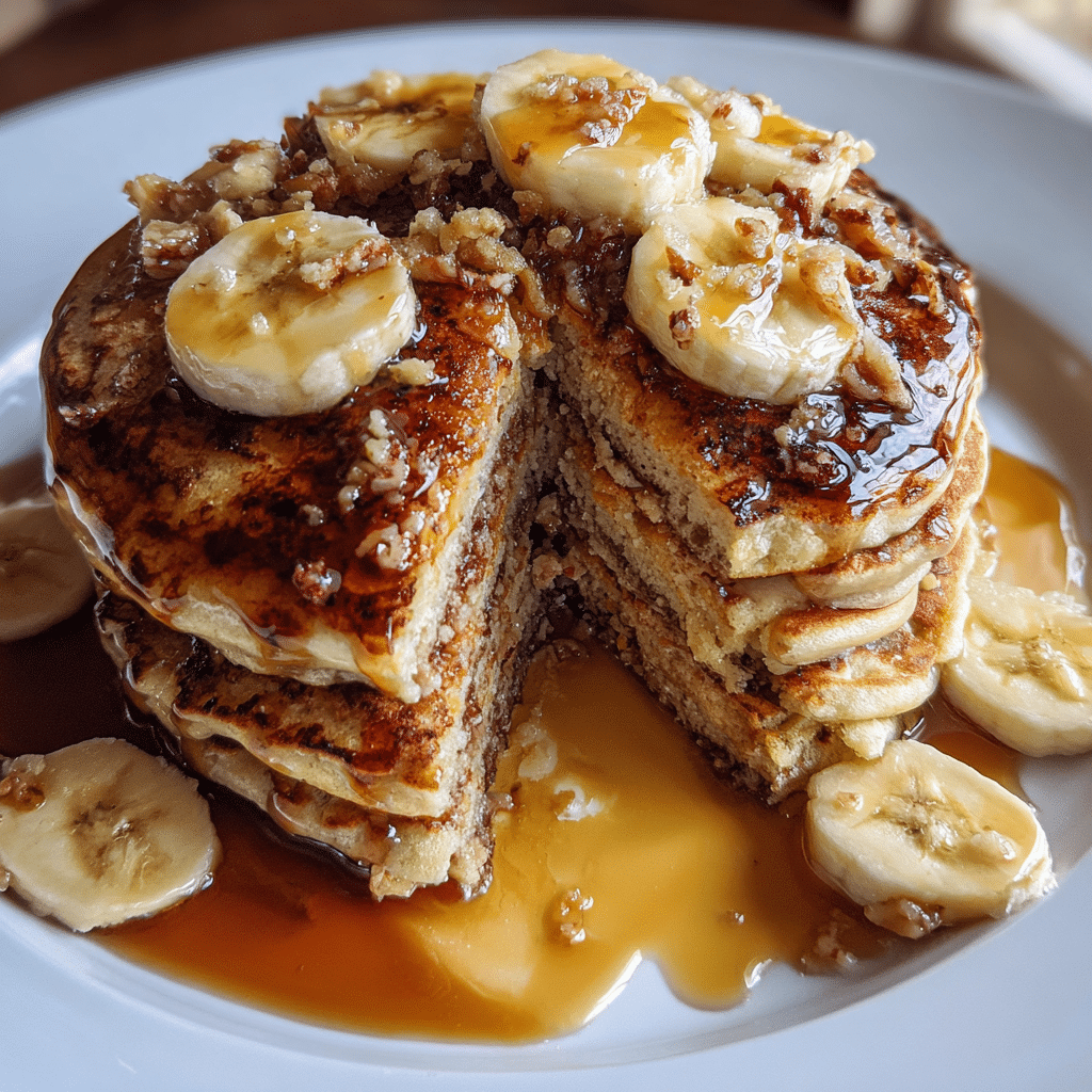 Fluffy and caramelized Brown Sugar Banana Pancakes featuring ripe mashed bananas and rich brown sugar for a sweet, tender breakfast treat. Perfect for weekend mornings and family favorites.