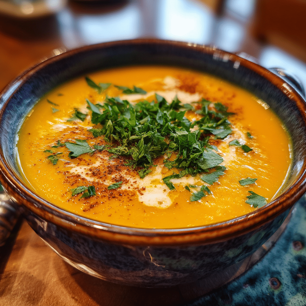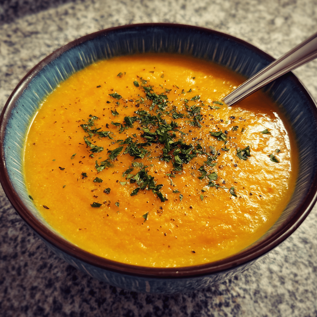 Creamy Carrot and Red Lentil Soup blended smooth with warming spices, sweet carrots, and protein-packed red lentils. A nourishing vegan soup perfect for cold days and meal prep.