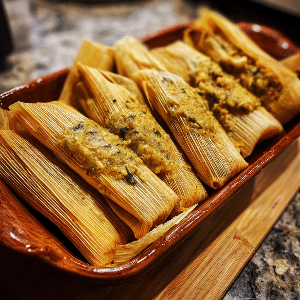 Traditional chicken salsa verde tamales made with fluffy masa, tender shredded chicken, and tangy homemade green salsa, all wrapped in corn husks and steamed to perfection. Perfect for holidays, celebrations, or make-ahead meals.