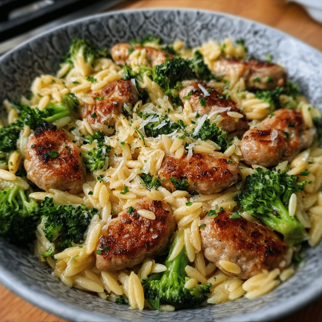 A quick and flavorful one-pan dinner with tender orzo pasta, savory chicken sausage, and fresh broccoli. Creamy, hearty, and perfect for busy weeknights.