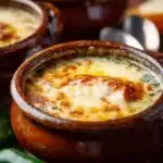 - Prepare to Serve: Preheat your broiler. Ladle the hot soup into individual ovenproof bowls. Place a slice of cheese on top of each bowl. This step will create a beautiful melted cheese layer when you broil the bowls.
