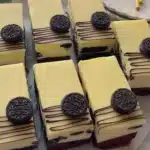- Pour the filling over the prepared Oreo crust.