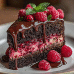 Chocolate Raspberry Cake delivers ultra-moist cocoa layers cradling silky raspberry compote with glossy chocolate ganache cascade. Deep chocolate intensity contrasts fresh raspberry tang while buttercream seals tender crumb. Romantic Valentine’s centerpiece combining dessert decadence with fruit brightness. Pinterest chocolate-raspberry thumbnail perfection.