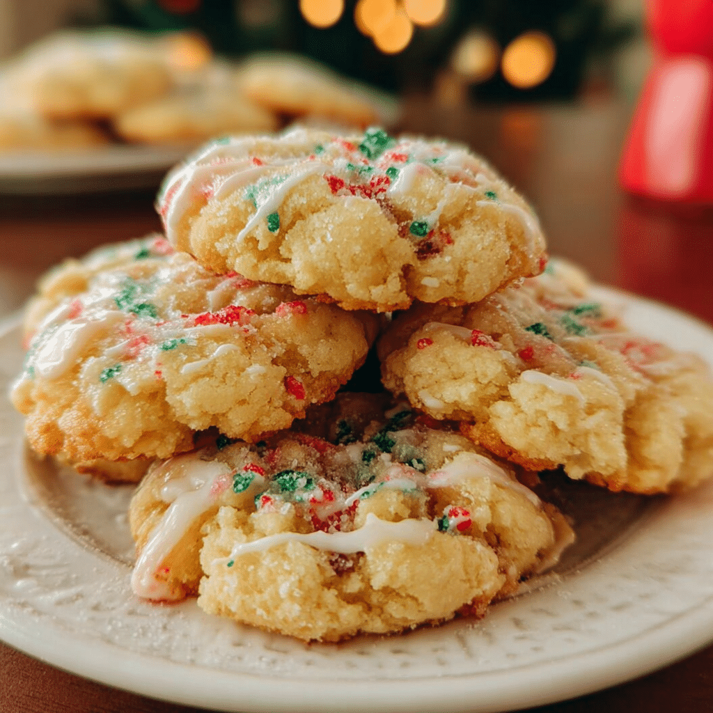 Hi, I’m Sam from dishfoody.com, where comforting classics get a fresh twist. Christmas Gooey Butter Cookies transform cake mix, cream cheese, and butter into soft, chewy centers with crackly powdered sugar crusts studded with holiday sprinkles.