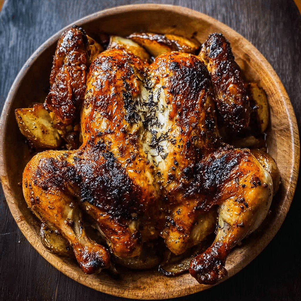 A whole roasting chicken (3½–4 lbs) works best. Spatchcocking (removing the backbone and flattening) ensures every bit roasts perfectly breast, thigh, and drumstick all reach doneness at the same time. Choose air-chilled chicken for even crisper skin.