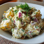A timeless classic potato salad made with tender potatoes, creamy mayonnaise dressing, crunchy celery, and hard-boiled eggs. Perfect for picnics, barbecues, and family gatherings.