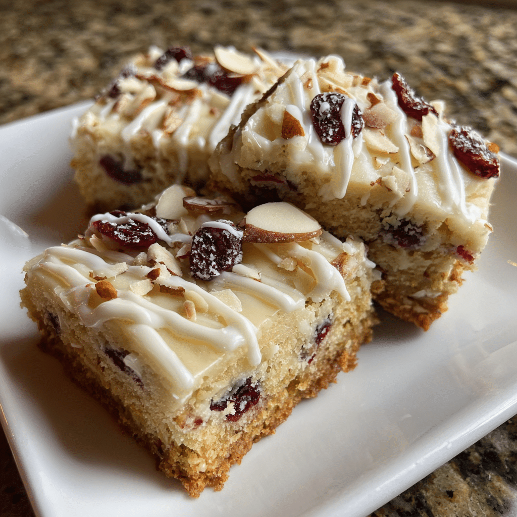 Soft, chewy Cranberry Bliss Bars inspired by the Starbucks favorite. A blondie-style base topped with sweet cream cheese frosting, dried cranberries, and a drizzle of white chocolate perfect for holidays or anytime cravings.