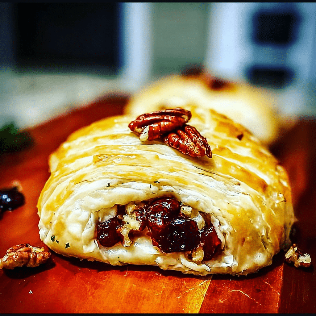 PrintCranberry Pecan Brie Wrapped in Puff Pastry: Elegant Party Appetizer