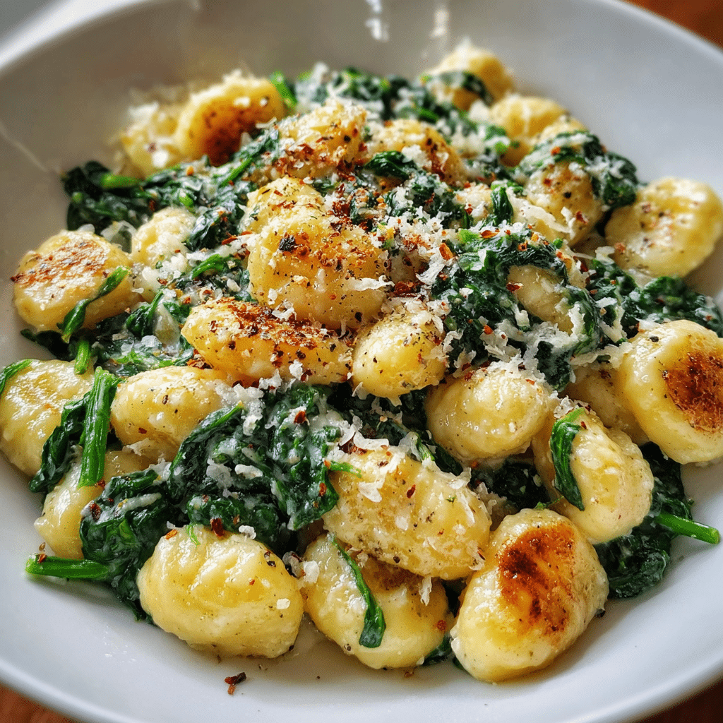 Tender gnocchi tossed in a creamy sauce with fresh spinach and crumbled feta for a quick, comforting meal.