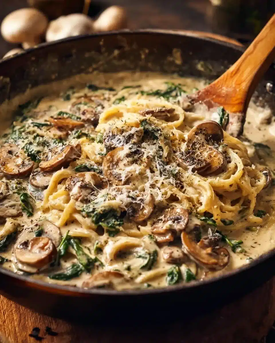 Creamy Parmesan Spinach Mushroom Pasta