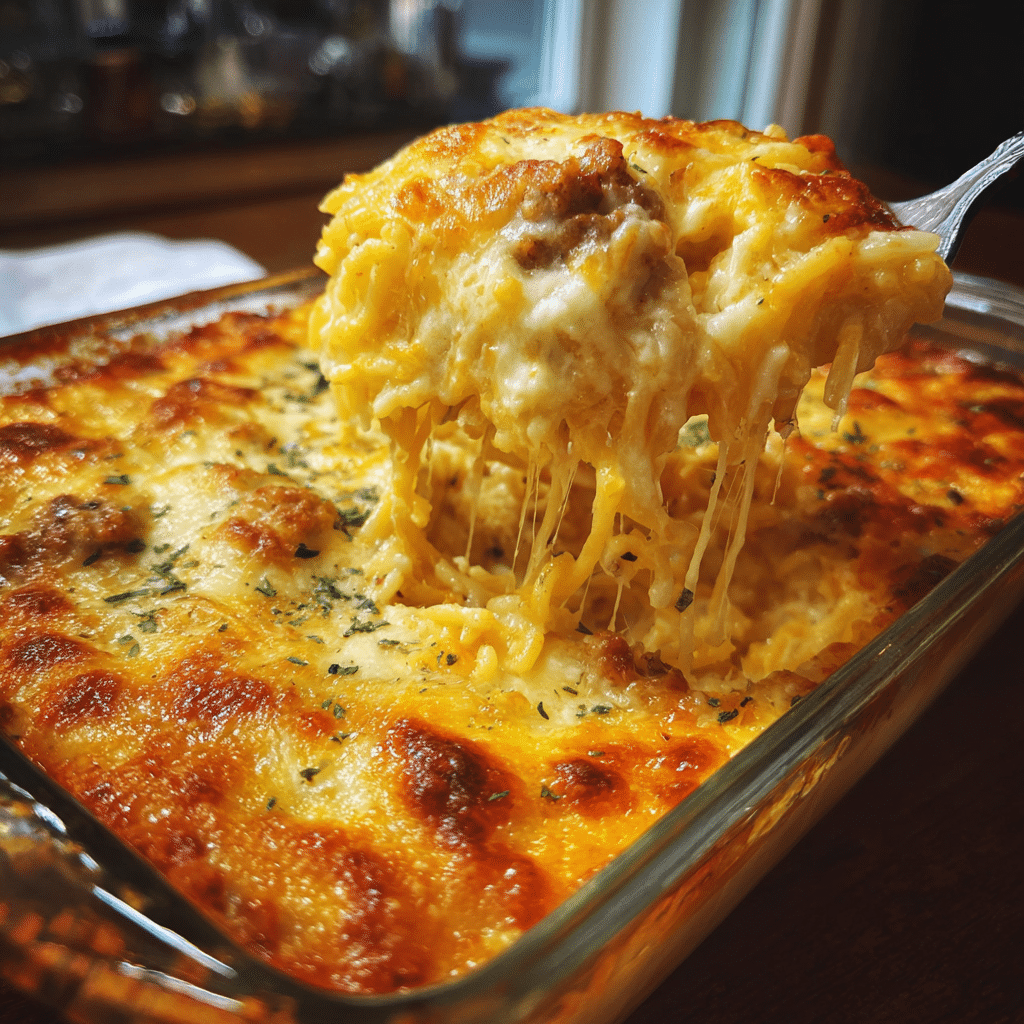 Keywords: Creamy Southern Spaghetti Bake, spaghetti casserole, baked pasta, Southern comfort food