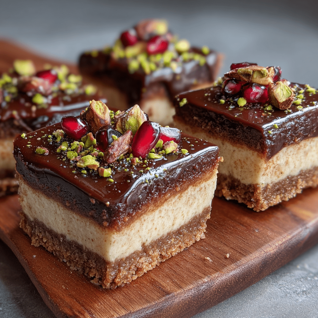Dubai Chocolate Cheesecake Bars recreate the viral Dubai chocolate bar’s magic: crispy kataifi, creamy pistachio, tahini crunch, and glossy ganache layered into no-bake cheesecake bars. Ready in 30 minutes plus …