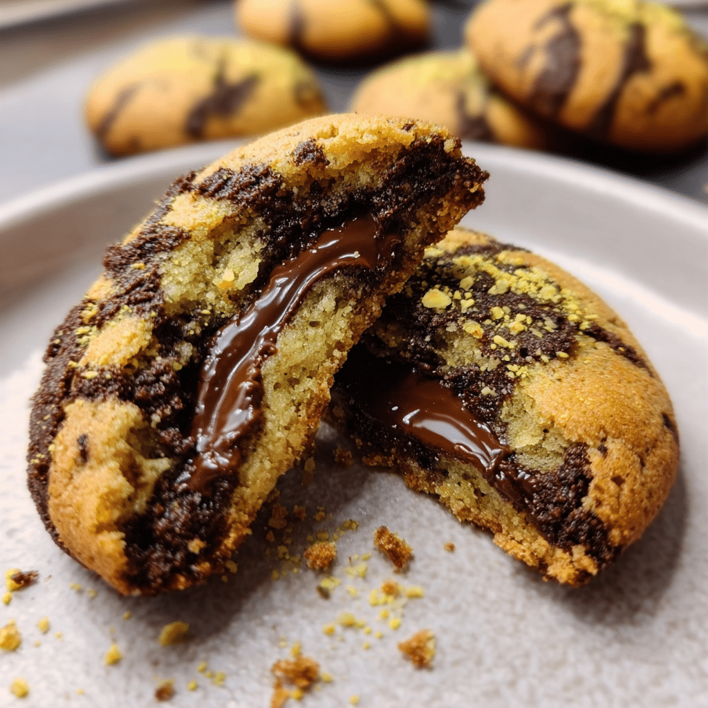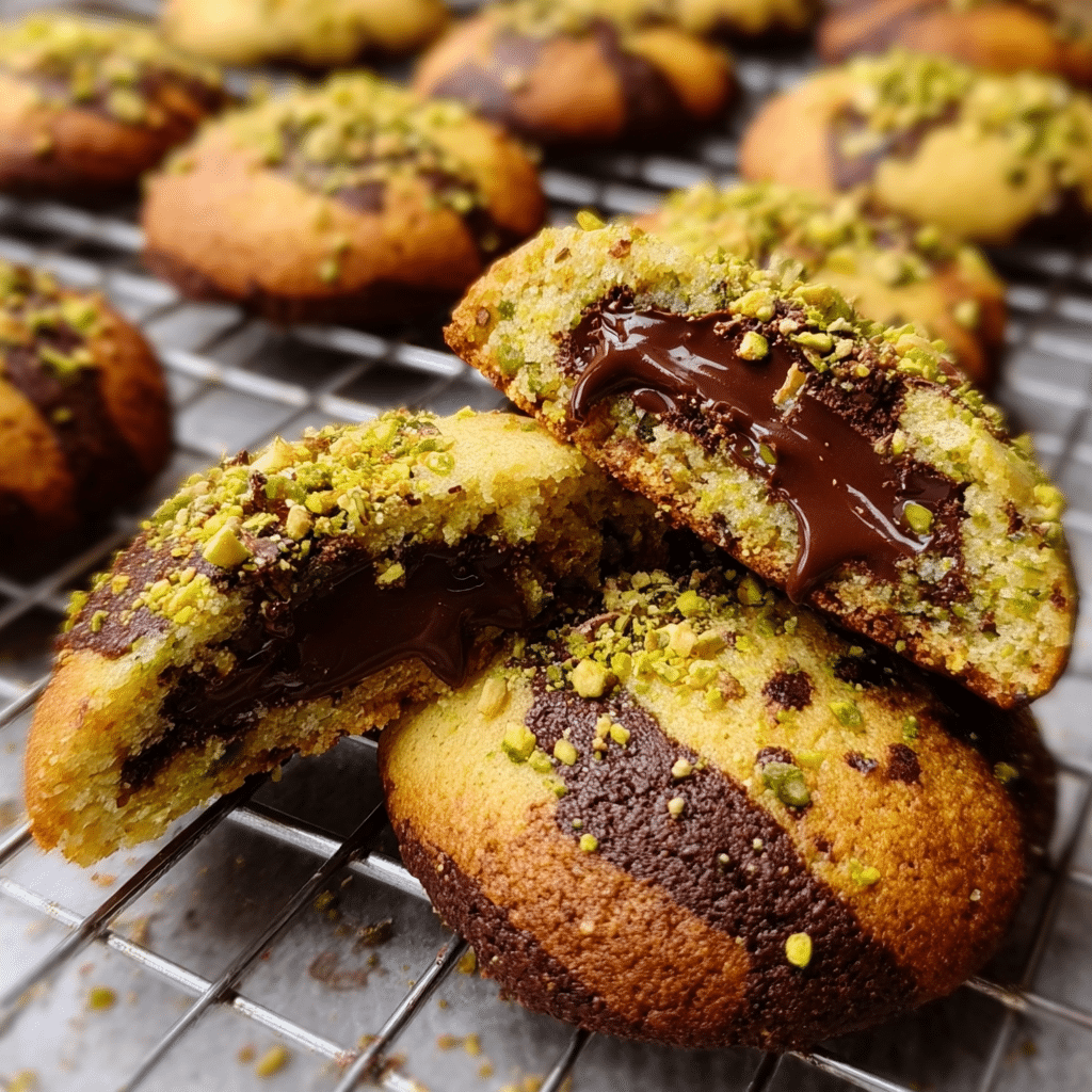 Dubai Chocolate Stuffed Cookies feature rich chocolate cookie dough wrapped around a crunchy pistachio kataifi filling, inspired by the viral Dubai chocolate bar. These indulgent treats offer crispy edges, gooey centers, and nutty pistachio surprise in every bite.[web:1][web:2]