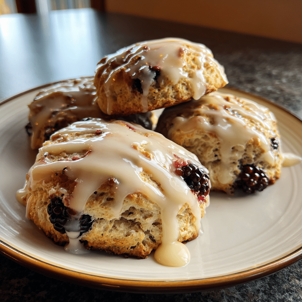 Buttery bakery-style scones infused with fragrant Earl Grey tea and juicy blackberries, finished with a bright lemon glaze. Elegant, lightly sweet, and perfect for brunch or afternoon tea.