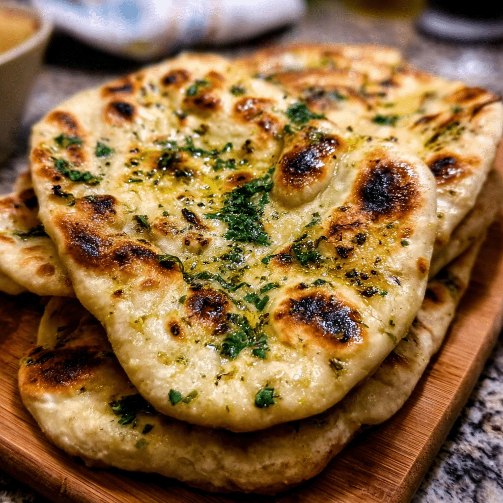 Easy Garlic Naan Bread bubbles homemade joy pillowy perfection.