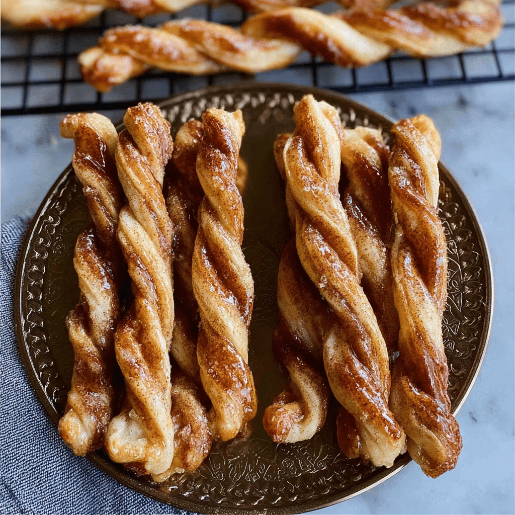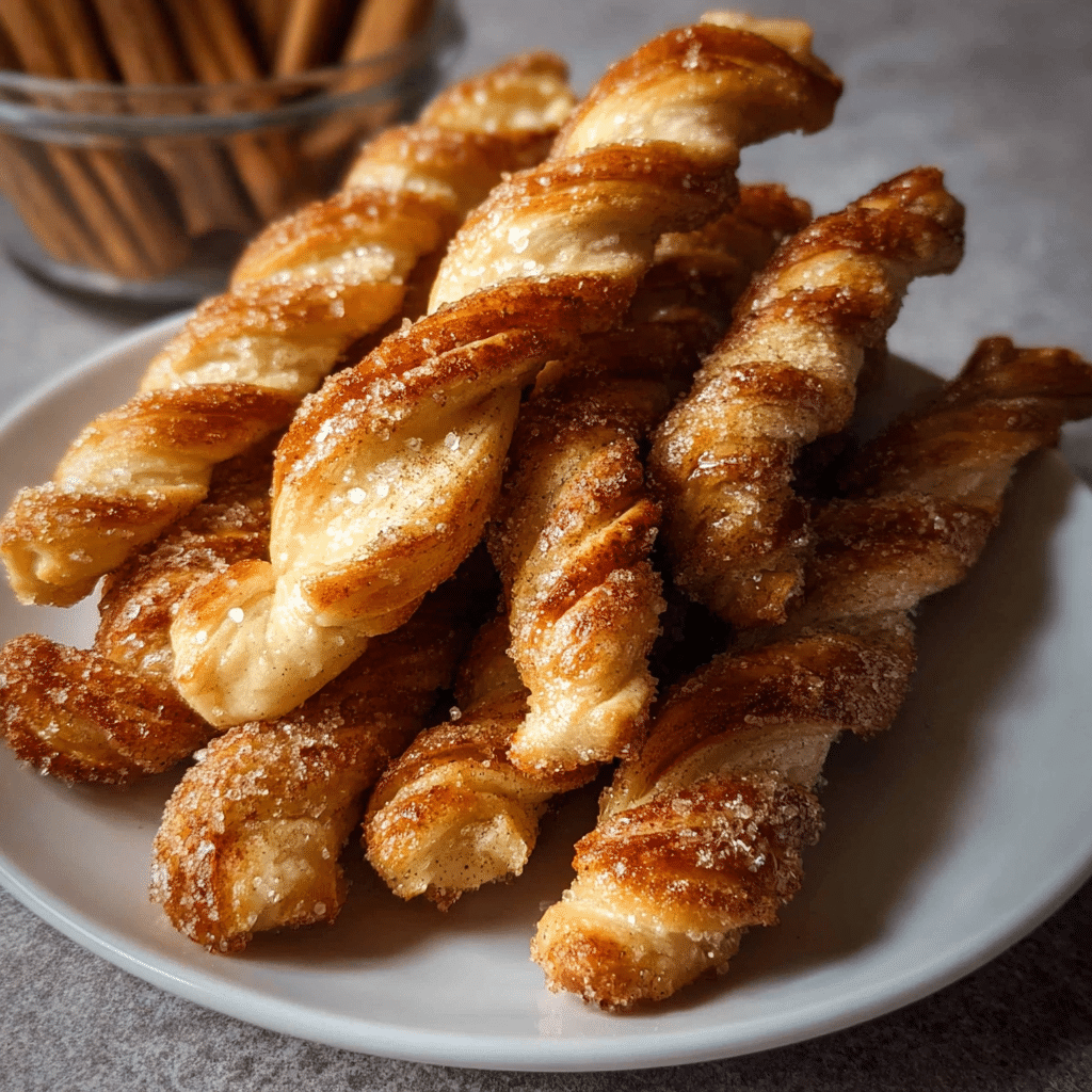 Flaky Sweet Cinnamon Twists are buttery puff pastry sticks coated in cinnamon sugar, baked until crisp and golden the perfect easy treat for breakfast or dessert.