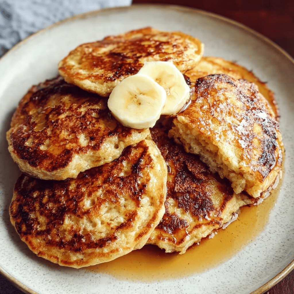 Light, fluffy pancakes made with ripe bananas and protein-rich cottage cheese for a wholesome, naturally sweet breakfast.