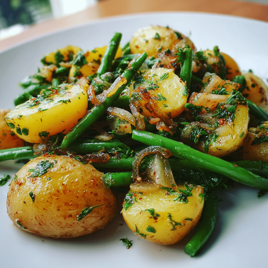 A fresh and elegant French-style potato and green bean salad tossed in a tangy Dijon vinaigrette with herbs, perfect as a light lunch or summer side dish.