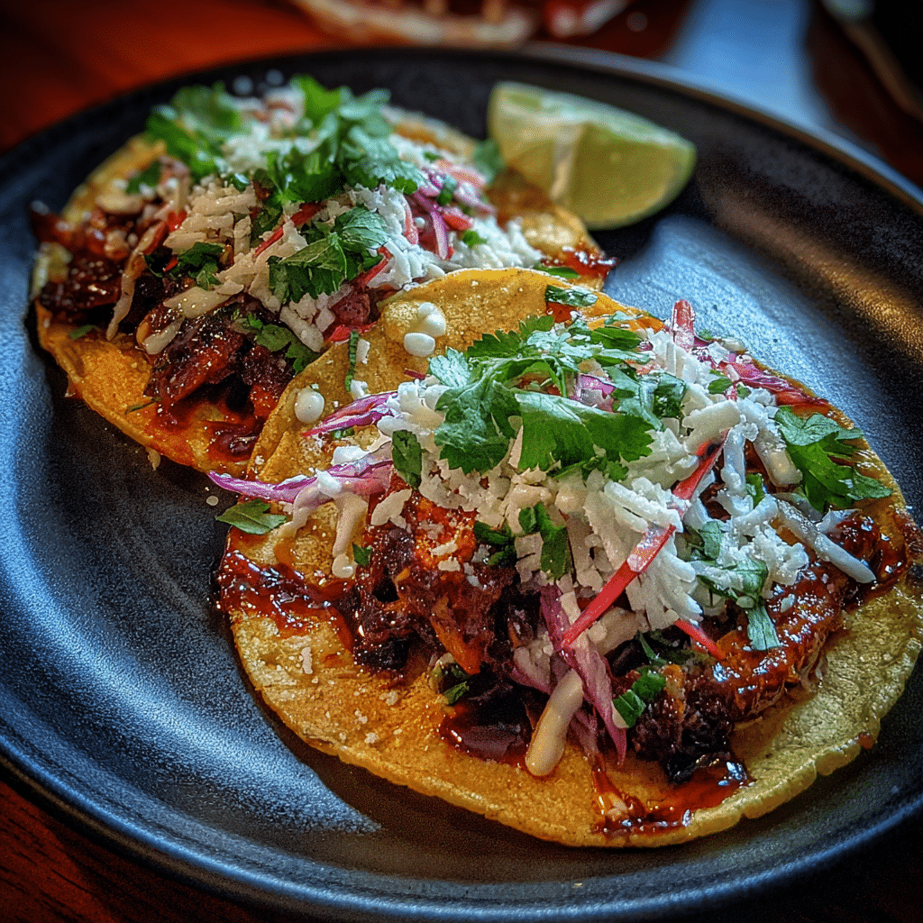 Hi, I’m Sam from dishfoody.com, where comforting classics get a fresh twist. Garlic Butter Honey BBQ Tacos glaze thin beef strips in sticky honey-BBQ reduction finished with garlic butter brush for sweet-smoky crunch wrapped in soft corn tortillas.