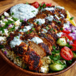 Hi, I’m Sam from dishfoody.com, where fresh Mediterranean flavors meet easy meal prep. If you’re tired of boring lunches or heavy dinners, these Greek Chicken Bowls offer a vibrant, protein-packed meal with tender marinated chicken, crisp vegetables, tangy tzatziki, and wholesome grains.