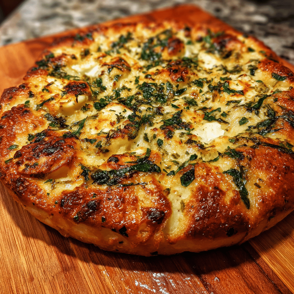 Greek Roasted Garlic Spinach White Pizza Delight is a savory, flavorful pizza topped with roasted garlic, fresh spinach, creamy cheeses, and Mediterranean herbs for a delicious homemade treat.