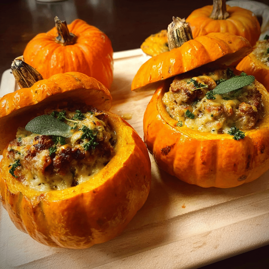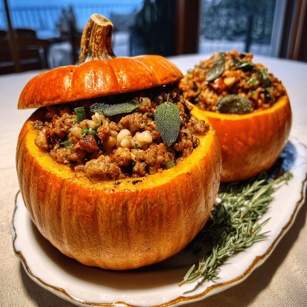 Mini pumpkins stuffed with savory ground turkey, nutty brown butter, sage, and wild rice a cozy and elegant autumn dinner bursting with seasonal flavor.