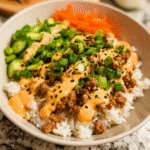 Flavor-packed Ground Turkey Rice Bowls topped with a creamy, spicy Bang Bang Sauce a quick, healthy, and satisfying meal perfect for busy weeknights.