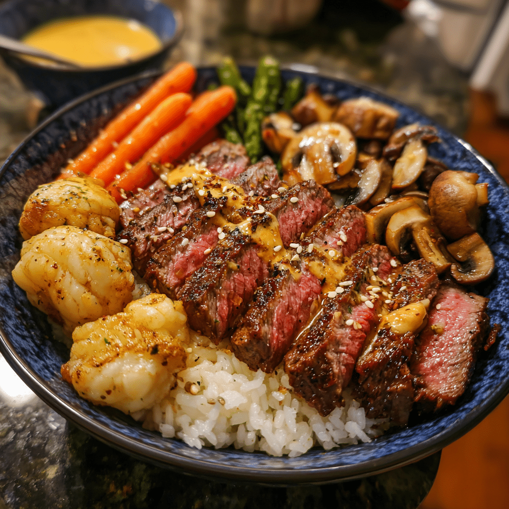 Absolutely! Hibachi steak bowls are excellent for meal prep when stored properly. Cook all components and store them separately in airtight containers: steak in one, vegetables in another, rice in a third, and sauce in a small container. This prevents components from making each other soggy and allows you to control portions. Assembled this way, your meal-prepped hibachi steak bowls stay fresh for 4-5 days in the refrigerator. Reheat gently to avoid overcooking the steak, and add fresh garnishes like green onions and sesame seeds just before eating for the best presentation.