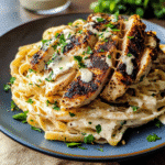 Hi, I’m Sam, and I’m so glad you’re here! At dishfoody.com, I share flavorful, feel-good recipes that make cooking easier and more joyful. This dish combines grilled, juicy chicken with a creamy, high-protein Alfredo sauce over tender pasta — a comforting, guilt-free dinner that keeps you satisfied.