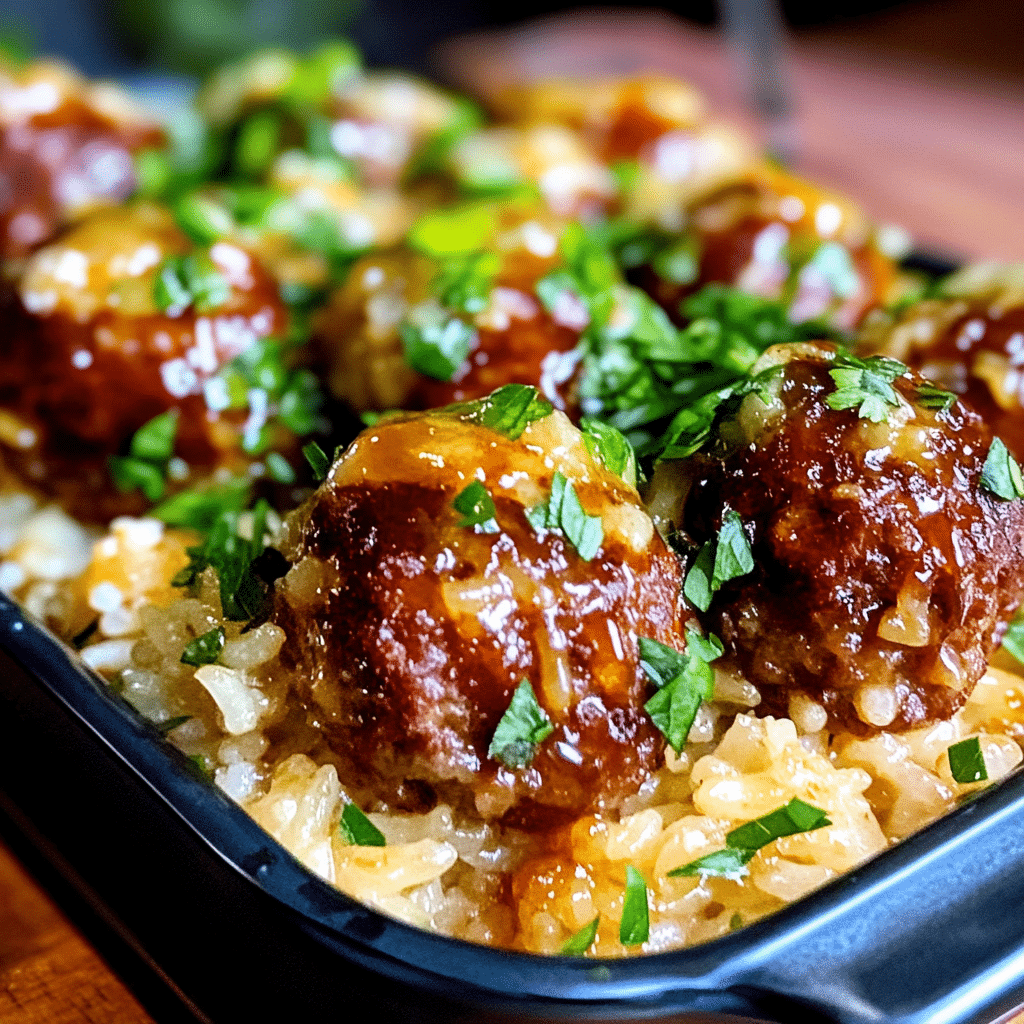 PrintHoney Garlic Meatball Rice Bake: One-Pan Wonder in 45 Minutes