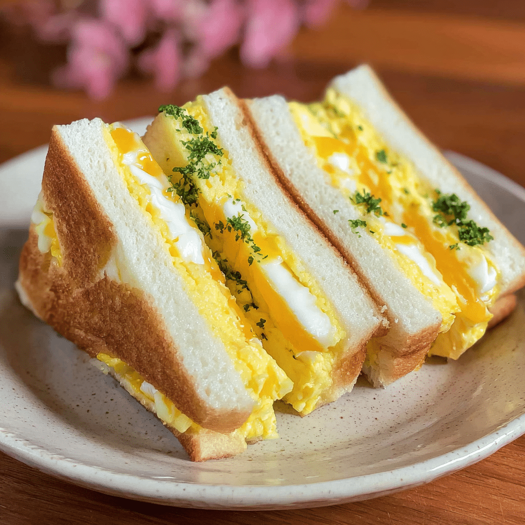 A soft, creamy Japanese egg salad sandwich made with fluffy milk bread, rich mayo, and perfectly cooked eggs. A classic convenience-store favorite that’s simple, comforting, and incredibly delicious.