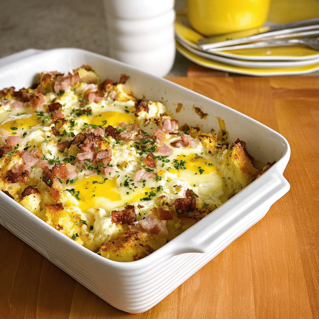 Joanna Gaines Eggs Benedict Casserole recreates classic eggs Benedict as a make-ahead breakfast bake with English muffins soaked in Canadian bacon custard, topped with creamy hollandaise sauce. Perfect for holidays or brunch crowds with minimal morning effort.