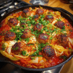 This Kimchi Cabbage Turkey Meatball Skillet is a one-pan, Korean-inspired dinner with juicy turkey meatballs simmered in a spicy, tangy kimchi-cabbage sauce. Serve over rice or enjoy straight from the skillet for a high-protein, veggie-packed meal.