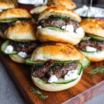 Hi, I’m Sam from dishfoody.com, where mini burgers pack maximum flavor. These Lamb Sliders feature juicy ground lamb patties seasoned with Mediterranean spices, topped with creamy tzatziki, feta, and fresh cucumber on soft slider buns.