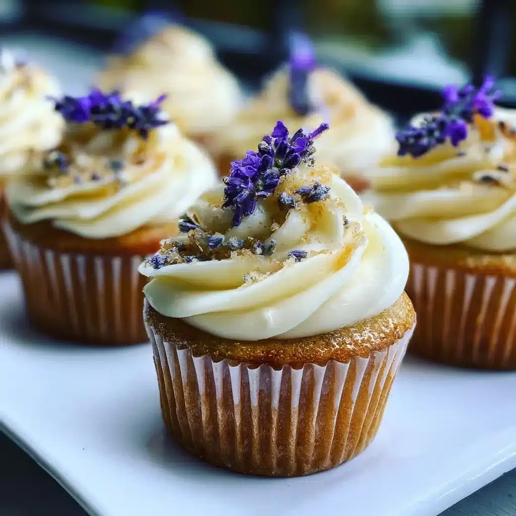 Delightful cupcakes combining the floral essence of lavender with the sweetness of honey, perfect for any occasion.