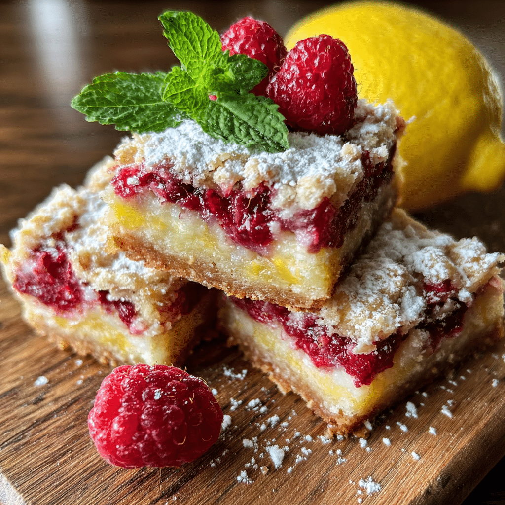 Bright and buttery lemon raspberry bars with a crisp shortbread crust and a tangy lemon filling swirled with sweet raspberries. Perfectly balanced, refreshing, and ideal for spring or summer desserts.