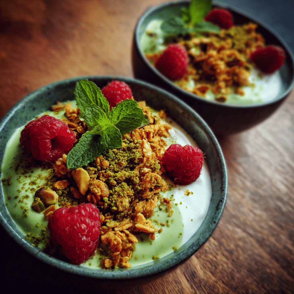 Matcha Pistachio Granola Yogurt Bowls layer creamy matcha-swirled Greek yogurt with crunchy homemade pistachio granola and fresh fruits for a vibrant, energizing breakfast packed with antioxidants and protein.