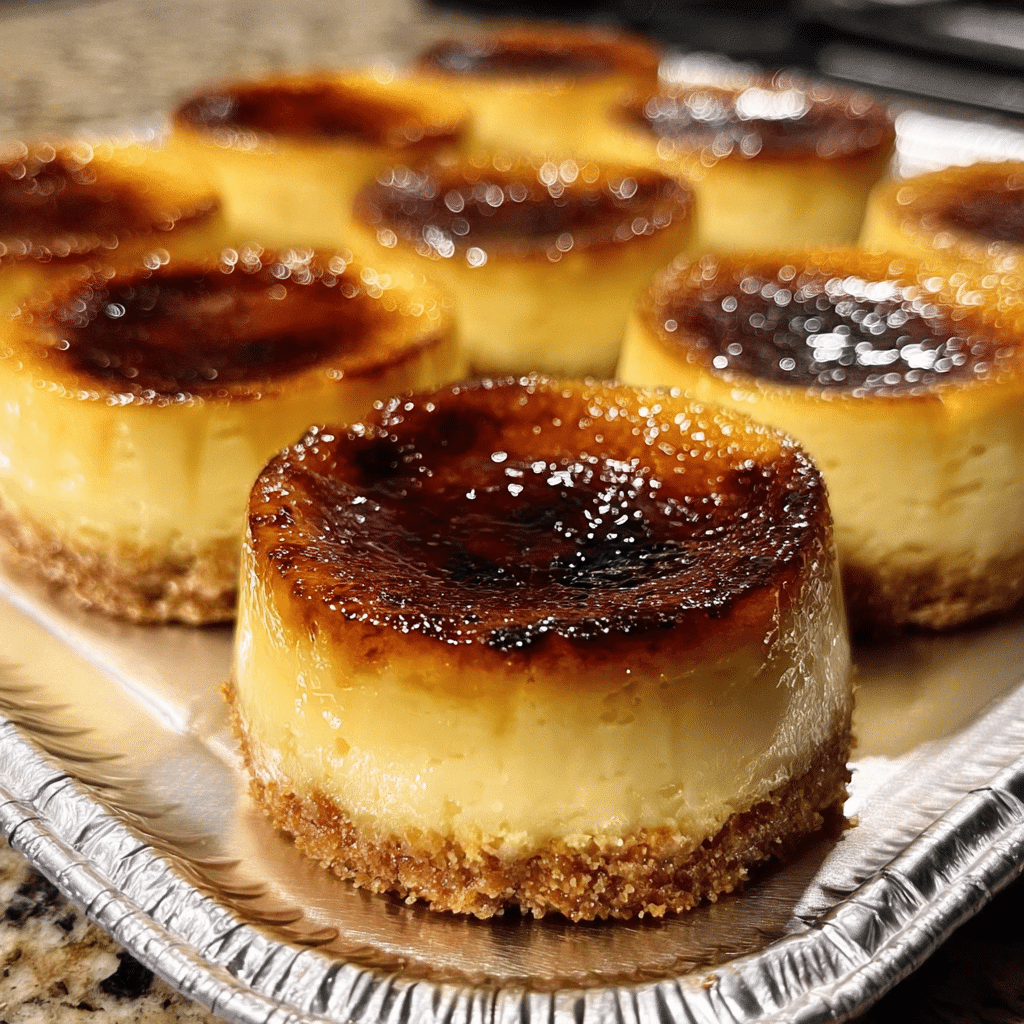 Keywords: Mini Crème Brûlée Cheesecakes, caramelized cheesecake bites, creamy dessert, mini cheesecakes