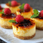 Craving a dessert that’s elegant, bite-sized, and irresistibly creamy? Mini Crème Brûlée Cheesecakes combine two luxurious classics the smooth richness of cheesecake and the caramelized crunch of crème brûlée.
