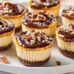 Delightful mini cheesecakes featuring a rich blend of chocolate, caramel, and pecans, inspired by the famous turtle candy.