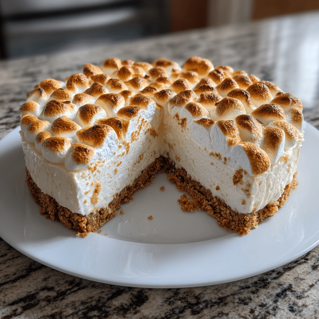 Indulge in the light, fluffy, and silky sweetness of this No-Bake Marshmallow Cheesecake an effortless dessert perfect for any occasion. For more decadent delights, visit dishfoody.com and try our Gooey Chocolate Marshmallow Mug Cake.