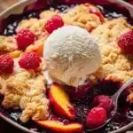 Peach Cobbler with Raspberries is a delightful dessert that combines the classic taste of sweet peaches with the tartness of fresh raspberries. This dish brings a refreshing twist to traditional cobbler, making it a perfect summer treat. It’s not only delicious but also easy to make, allowing even beginner cooks to shine in the kitchen. Serving warm with a scoop of vanilla ice cream enhances its flavors, creating a comforting experience that evokes memories of family gatherings and sunny days.