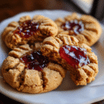 Peanut Butter and Jelly Cookies are classic soft peanut butter cookies with sweet strawberry jam centers, featuring crisp edges and chewy centers. Perfect lunchbox treats or afternoon snacks that capture nostalgic PB&J sandwich flavors in cookie form.